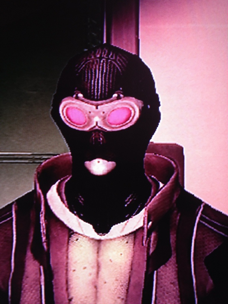 Omg I laughed so hard when I saw him! He normaly looks so cool! Did they run out of time during the design process?? Did they let the intern do it?? He looks like he has a knitted robber mask on and some super old pilot glasses! And they are pink!! Hahaha soo funny! xD